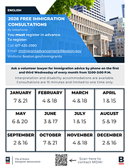Esta propuesta fue iniciada por el grupo de trabajo sobre inmigración organizado por Neighbors United for a Better East Boston. Contó con unos 20 participantes. El grupo, tras leer las ideas propuestas por los residentes en la asamblea anterior, además de las ideas propuestas por los residentes en el proceso de presupuesto participativo de la ciudad, examinó los programas y recursos existentes que ofrece la ciudad y acordó que sus clínicas legales gratuitas son un gran recurso, pero que no satisfacen la demanda y la necesidad real de representación legal al ofrecer solo asesoramiento jurídico.
